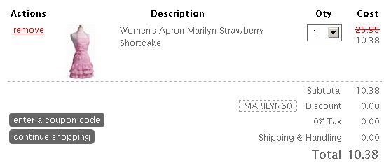 For a limited time, Flirty Aprons is offer 60% off their Marilyn Apron Styles (pictured above) - they have a few color options for you to choose from, but hurry because they're starting to sell out! Enter promo code: MARILYN60. The item pictured above is currently priced at $25.95, but will drop to just $10.38 after the coupon code!!